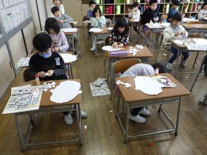 1月24日(水)「かおをつくる1年生」1 公開日 2024/01/24 更新日 2024/01/24 学校の様子 1年生が図画工作で、紙をいろいろな形に切って「顔」を制作中です。目、鼻、口、まゆげ、髪の毛などをくっつけて、個性的な「顔」ができています。