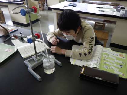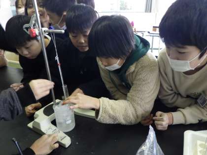 4年生理科では、水を冷やすと温度や様子はどう変わるのか実験をしました。だんだん氷になっていく様子を観察し、温度の変化を記録することができました。