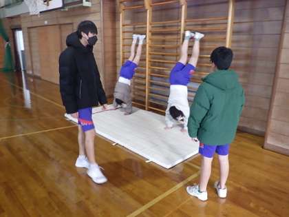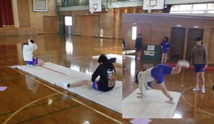 2月9日(金)6年生 マットに挑戦! 公開日 2024/02/09 更新日 2024/02/09 学校の様子 6年生体育のマット運動では、ペア・グループで教え合い見合いながら練習し、倒立、側転、開脚前・後転など小学校6年間の成果を試しています。