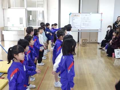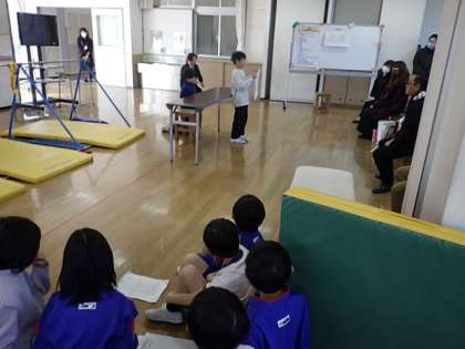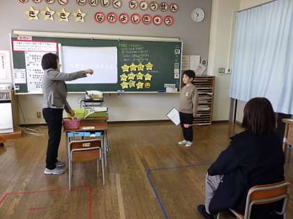 漢字や鉄棒、図工作品など、がんばった学習の成果を披露する2年生。最後には、みんなできれいな歌声を響かせました。→