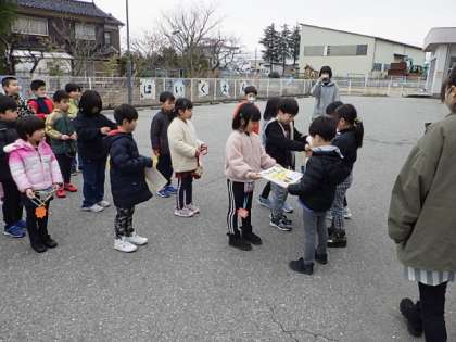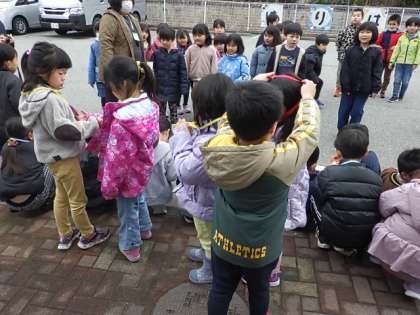 1年生が、はりはら保育園を訪問して、来年度本校入学生が多くいる年長組と交流しました。