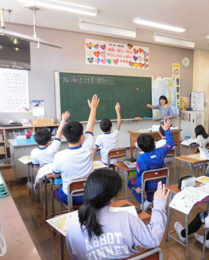 あおぞら級 交流の様子 公開日 2024/04/26 更新日 2024/04/26 学校の様子 あおぞら級の子供達は、それぞれの交流級でもがんばって授業に参加しています。写真は、1年生体育科、3年生外国語科、4年生社会科の授業の様子です。