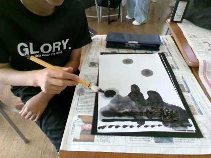 図画工作科で、墨と水を使った描き表し方について学習しています。