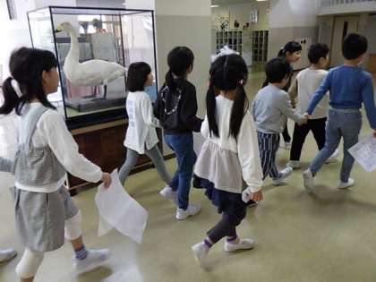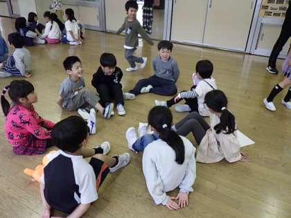 1年生は、2年生さんから「なかよくなろう集会」に招待され、大きな招待状をもらいました。2年生が手を繋いで学校を案内してくれました。各場所でクイズもあり、椅子を出しくれたり、答えが分かまらないときにはヒントを出してくれたりしました。また、学校案内から戻ってきて、一緒にハンカチ落としをしました。とても楽しい時間になりました。2年生さん、集会をありがとうございました。