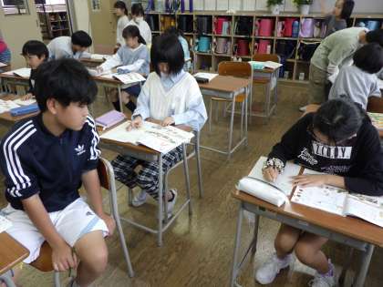 家庭科では来週の調理実習に向けて、準備物や役割を確認しました。上手にゆでる料理がつくれるか楽しみにしている子供たちでした。