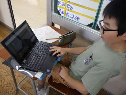 算数では小数のかけ算の学習をしています。小数でも計算のきまりは成り立つのか、電卓を使って確かめました。