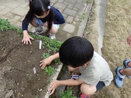 生活科の時間にヒマワリ・ホウセンカ・マリーゴルドの種の観察をしました。その後、自分の選んだ種を蒔きました。花壇に自分の思っている花が咲くように祈っていました。