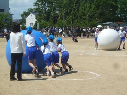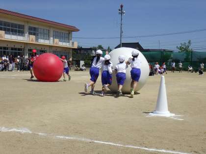 どの団も全学年が力を合わせて一つの大玉をつないでいきました。