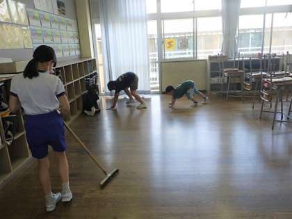 6月に入り、なかよし班清掃の場所が新しくなりました。班のメンバーで協力し、最後まで一生懸命取り組んでいます。