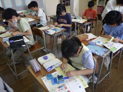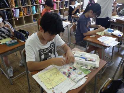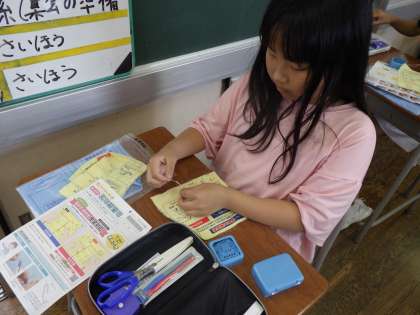 裁縫の学習をしています。玉結びと玉どめに挑戦しました。自主学習として家で練習する子もいました。だんだん上手になっています。
