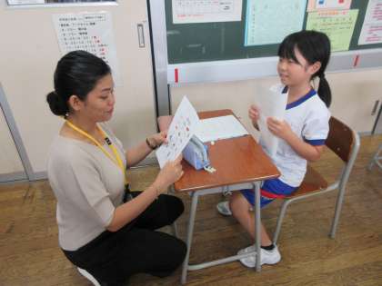 曜日の聞き方「What day is it?」や答え方「It's Monday.」などを、ビンゴゲームを通して楽しく学習できました。