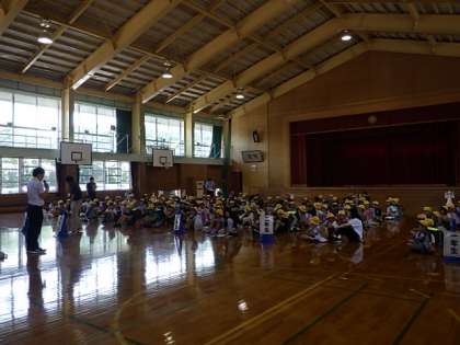 学習参観後、引き渡し訓練を行いました。保護者の方々の協力で、大変スムーズに行うことができました。