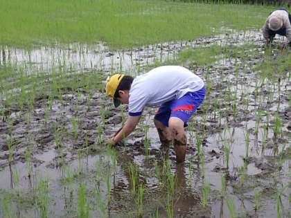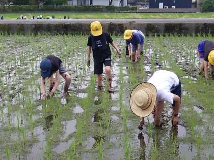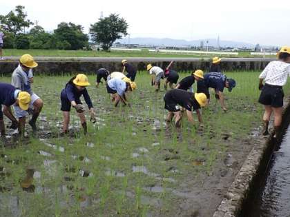 地域の田んぼで草取りの体験をしました。正確に抜き取ることが難しく、集中して取り組みました。