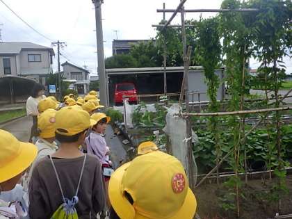 生活科 町探検パート2(2年生) 公開日 2024/07/08 更新日 2024/07/08 学校の様子 6月の「町探検パート1」に引き続き、「町探検パート2」に出かけました。今日は、交通公園・運転教育センター、Saturday Smoothie Factory、刀尾神社、交通機動隊のコースで、初めて通ったところがあった人もいました。交差点できれいに咲いている花壇を見付けたり、畑の作物を見て「これはキュウリ、これはサツマイモ」と野菜の種類をあてたりしながら、校区のすてきを感じていました。