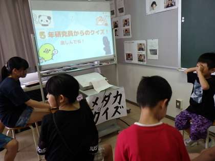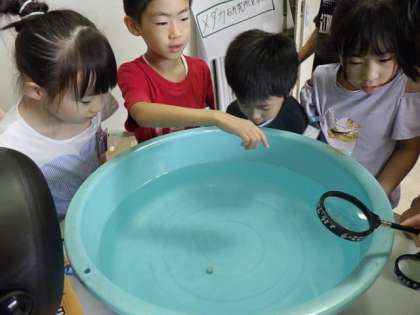 「針原お魚研究所見学ツアー」の整理券をもらった子供たちが、見学ツアーに参加しました。クイズあり、えさやり体験あり、卵を顕微鏡で見たりと、とても楽しく、勉強になりました。5年生のみなさん、ありがとうございました。