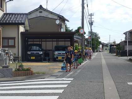暑い日が続いても 公開日 2024/07/23 更新日 2024/07/23 学校の様子 連日、朝から暑い日となっています。1学期も残すところあと1日となりましたが、針っ子たちは、安全に気を付けて集団登校をしています。そして、玄関前では早くから「おはようございます」の声が響いています。雨の日も風の日も暑い日もあいさつ運動をがんばりました!