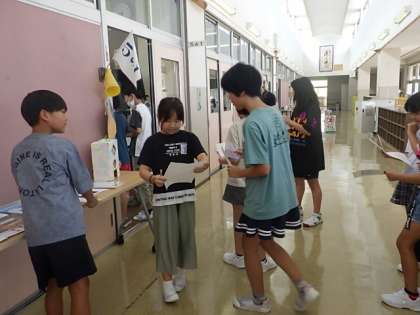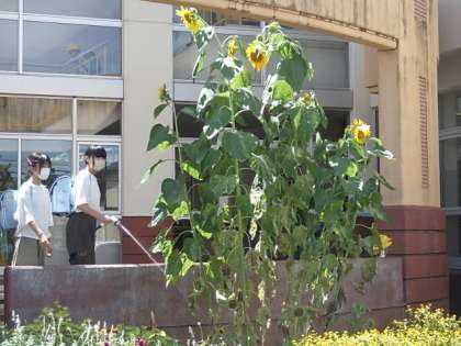 2学期スタート(3) 公開日 2024/08/27 更新日 2024/08/27 学校から連絡 作品の紹介をしたり、「夏休みビンゴゲーム」をしたりして、久しぶりに会った友達と楽しみました。下校の時に水やりをしていた6年生が、夏休み中に大きく成長した玄関前のヒマワリを見てびっくりしていました。