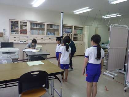 今日は、全学年で、身長、体重、視力の測定を行いました。1学期に比べて、どの子もすくすく成長していました。
