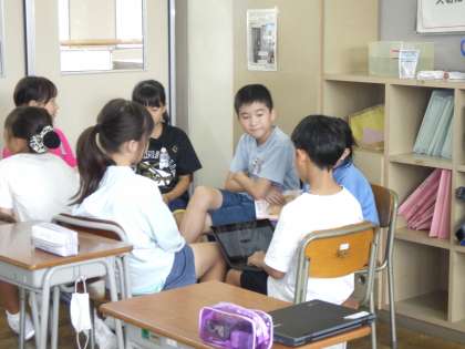 国語では「どちらを選びますか」の学習で、二つの立場に分かれて話し合いをします。「クラスで修学旅行をするとしたら、行き先は東京か沖縄どちらが良いか」等、自分たちでテーマを決め、グループごとに考えをまとめました。