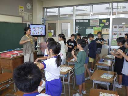 久しぶりの外国語活動の時間でした。1学期に学習した好きなものを聞いたり、伝えたりする表現を確かめながら復習しました。ALTのフェイ先生に聞いてみたいことをいろいろ質問して「同じだ!」「えー!」などと口々に反応していました。