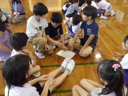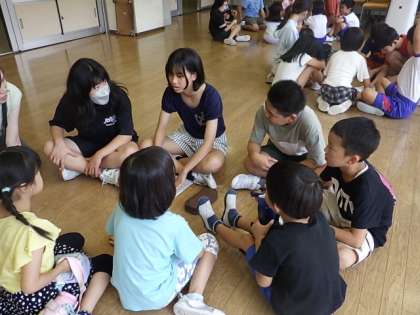 これまでの「なかよしタイム」は6年生が遊びを考えていましたが、2学期は班で遊びを相談して決めることになりました。今日は班ごとに集まり、和気あいあいと話し合っていました。決まった班からもう遊び始めていました。これからもっともっと仲良くなれそうです。