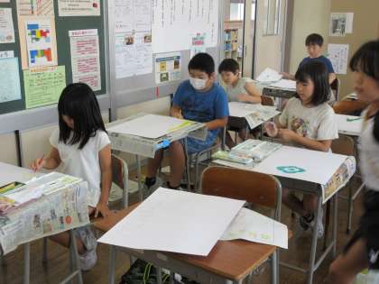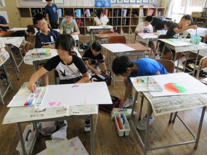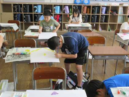 自分で想像した「まぼろしの花」を画用紙いっぱいにダイナミックに描いています。完成が楽しみです。
