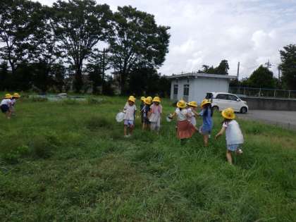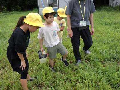 生活科で「虫だいすき」の学習をしました。どんなところにいるかを予想して、駐車場の横の草むらなら、虫がいそうだということになり、行くことにしました。そこには、たくさんの虫がいました。1年生は、虫を捕まえられて満足そうでした。