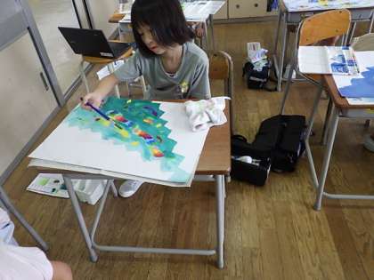 図工では「ふしぎなたまご」に取り組んでいます。今日は、割れたたまごから何が飛び出してくるかクレヨンで描いたり、バックを絵の具で塗ったりしました。とてもカラフルで楽しい作品になりそうです。