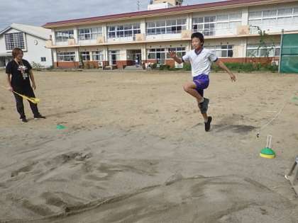 13日(金)の富山市チャレンジ陸上記録会に向けて、走り幅跳びの練習をしました。しっかりと踏み切り、体全体を使うようにすると、だんだん跳べるようになってきました。本番でよい記録が出るようがんばります!