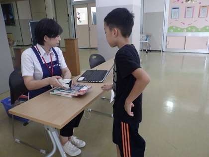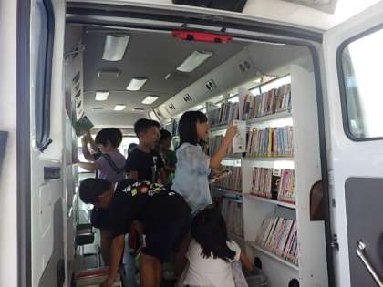 2学期初めての自動車文庫の日でした。2学期もいろいろな本に親しんでほしいと思います。暑い中、訪問してくださり、ありがとうございます!