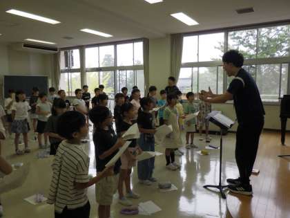 区域連合音楽会に向けて、3、4年生で合唱練習をしているところです。2パートに分かれて、それぞれの音を確認する練習を重ねています。少しずつ自信をもって歌える部分が増えてきました。一日一日、進化しています!