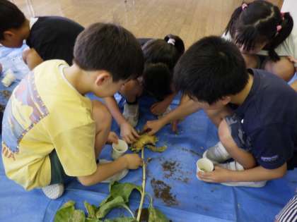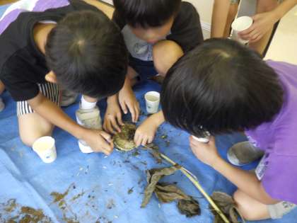 春から観察してきたひまわりの種を収穫しました。子供たちは、どのくらい採れるかなとわくわくしていました。実際に触って、「これ全部、種なの?」「中身がつまってそう!」と熱心に活動していました。