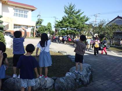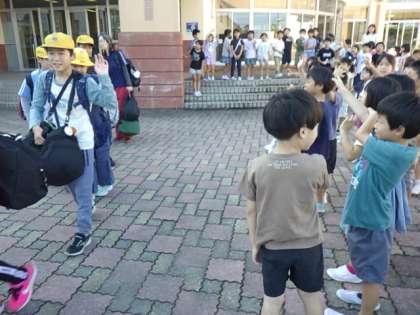 いつもお世話をしてくださっている5・6年生が宿泊学習へ出発式のときに児童玄関へ行きました。「いってらしゃ〜い」と手を振りながら見送りました。