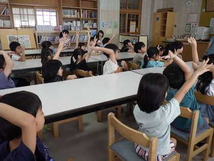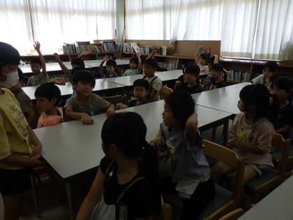 3年生が総合的な学習の時間に調べたことを1年生に教えて下さいました。クイズも入っていて、とっても分かりやすかったです。スライドや動画を交えて伝えてくださったので、1年生は「楽しかった」「針原小学校のこと(歴史)が分かった」と話していました。