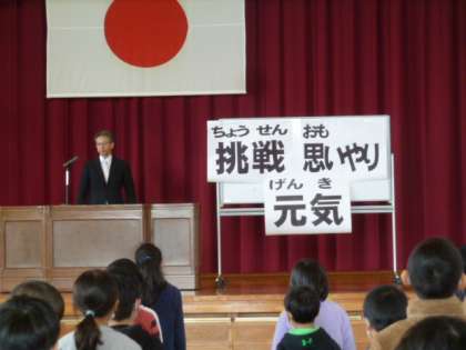 続いて1学期始業式がありました。校長先生から「挑戦すること、思いやりの心をもって行動すること、元気に過ごすことを大切にして頑張っていきましょう」とお話がありました。子供たちが楽しみにしていた担任発表では、ドキドキ、ワクワクした表情で校長先生の発表を聞いていました。