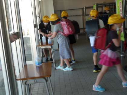子供たちは登校したら手指を消毒したり、しっかり手洗いしたりしています。