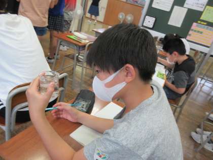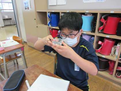 子供たちが待ち望んでいたメダカの観察をしました。細かい部分までスケッチをして、雄と雌をしっかりと見分けていました。