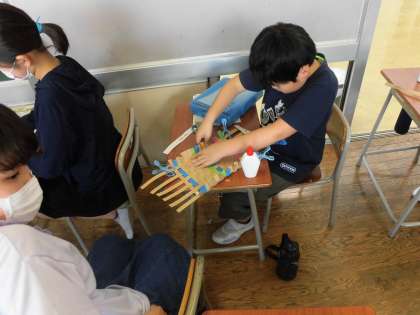 はじめは構造が理解できずに戸惑っていた子供たちも、作業を進めるうちにこつを覚え、立体ができていくことを楽しみながら作業を進めました。