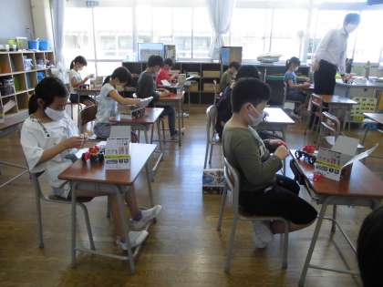 4年生は理科で「電流のはたらき」を学習しています。これまでに、直列つなぎと並列つなぎの特徴や違いを学びました。今日は、今まで学習したことを生かし、モーターカーを改造させ、動かしました。直列つなぎでスピードを出そうと試したり豆電球を付けながら走らせようと試したりする姿がありました。回路や電流の働きを考えながら、試行錯誤していた子供たちです。