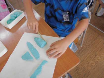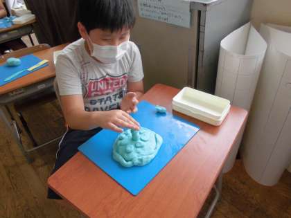 3年生 図工 切ってかき出しくっつけて 公開日 2020/06/18 更新日 2020/06/18 学校の様子 ねん土をねん土ベラで切ったり、かき出したりして、作品を作りました。 想像力をふくらませて作った作品は、何に見えるかな?