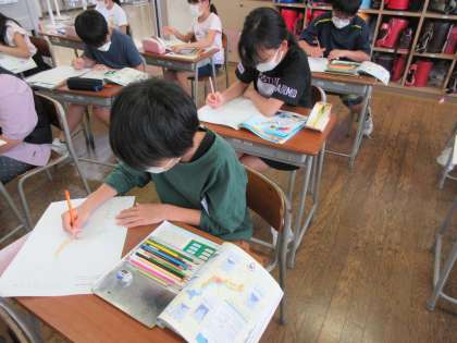 日本の各地の気候について学習しました。白地図に気候を色分けして記入したり、それぞれの気候の特色をまとめたりしました。
