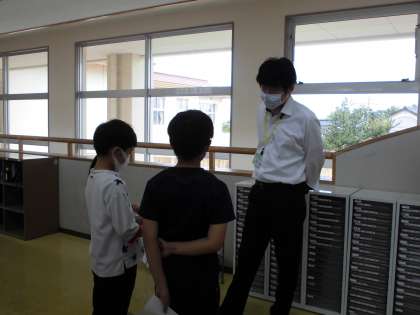 国語の学習で、新聞を作っています。今日は、目的に合った取材を行いました。教頭先生にインタビューをしている様子です。どのような新聞になるか、楽しみですね。