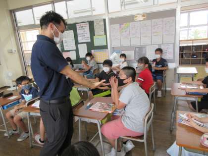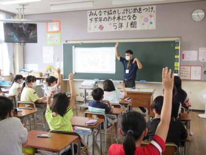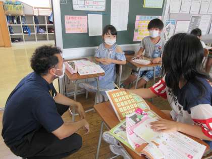 ディーン先生とゲームや会話をしながら、楽しく英語を学んでいる5年生です。