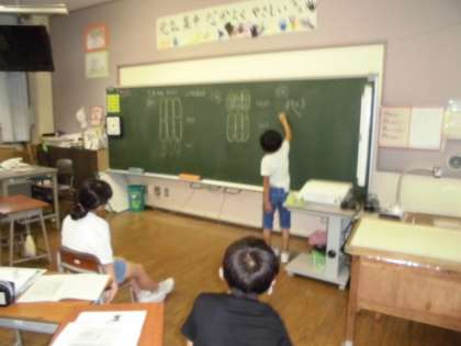 23×3をどう計算するのかについて、皆で話し合ったり、説明したりしました。図や式を使って、相手に伝わるように説明しようとしていました。