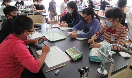 食塩を水に溶かす実験をしました。溶けた食塩はどうなったのかを予想しました。