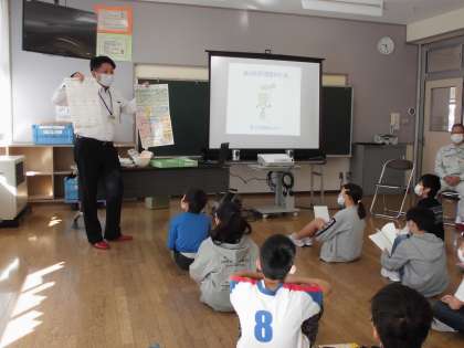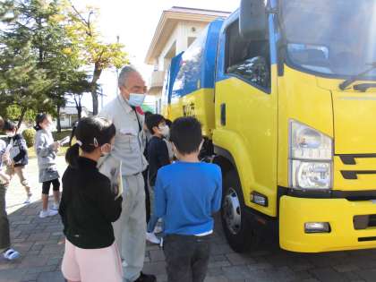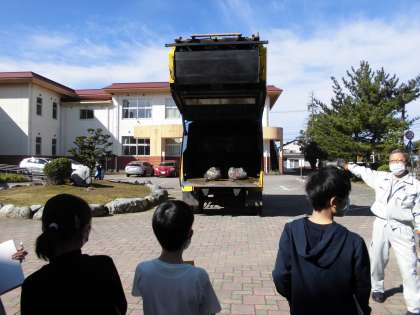 富山市環境センターの方々に来ていただき、3R推進スクールを受講しました。海洋ごみの現状や3Rの説明を受けました。また、ごみ収集車を間近で見学し、詳しい説明をしてもらいました。今回の学びを、これからの生活に生かしたいですね。