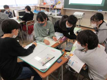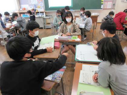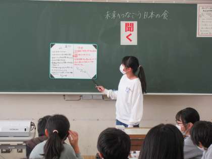5年生は「日本の食」について学習しています。日本の食のよさや課題について、友達と意見を聞き合い、発表しました。