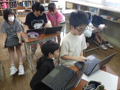 係活動では、クロムブックを使ってクイズをつくったり、運動の紹介動画をつくったりしています。友達同士でアイディアを出し合っています。