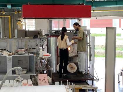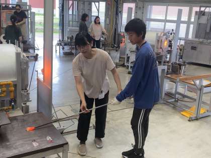卒業記念ガラス制作その2(6年生) 公開日 2024/10/07 更新日 2024/10/07 学校の様子 ガラスに泡をつけたり、棒を回してマーブル模様をつけたりして、つくりました!出来上がりは、約1ヶ月後とのことです。