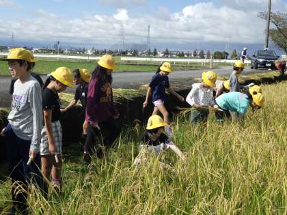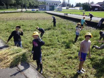 5月に田植えをして育った稲の収穫をしてきました。想像以上に大変な作業で、農家の方やお米への感謝の気持ちを高めている子供たちでした。